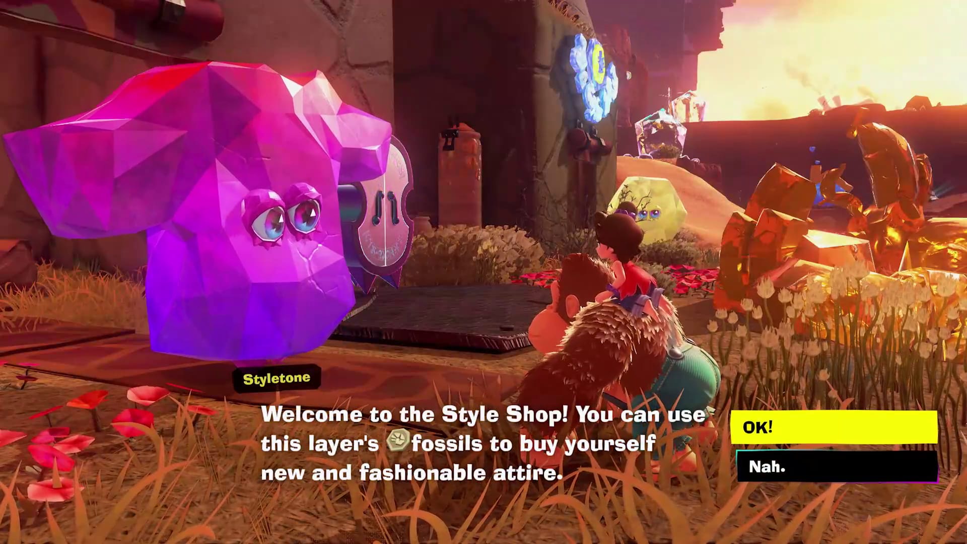 You can also find Fossils while you’re out exploring, which you can trade for new outfits at local Style Shops. Things you wear may have different benefits, marrying style and function!