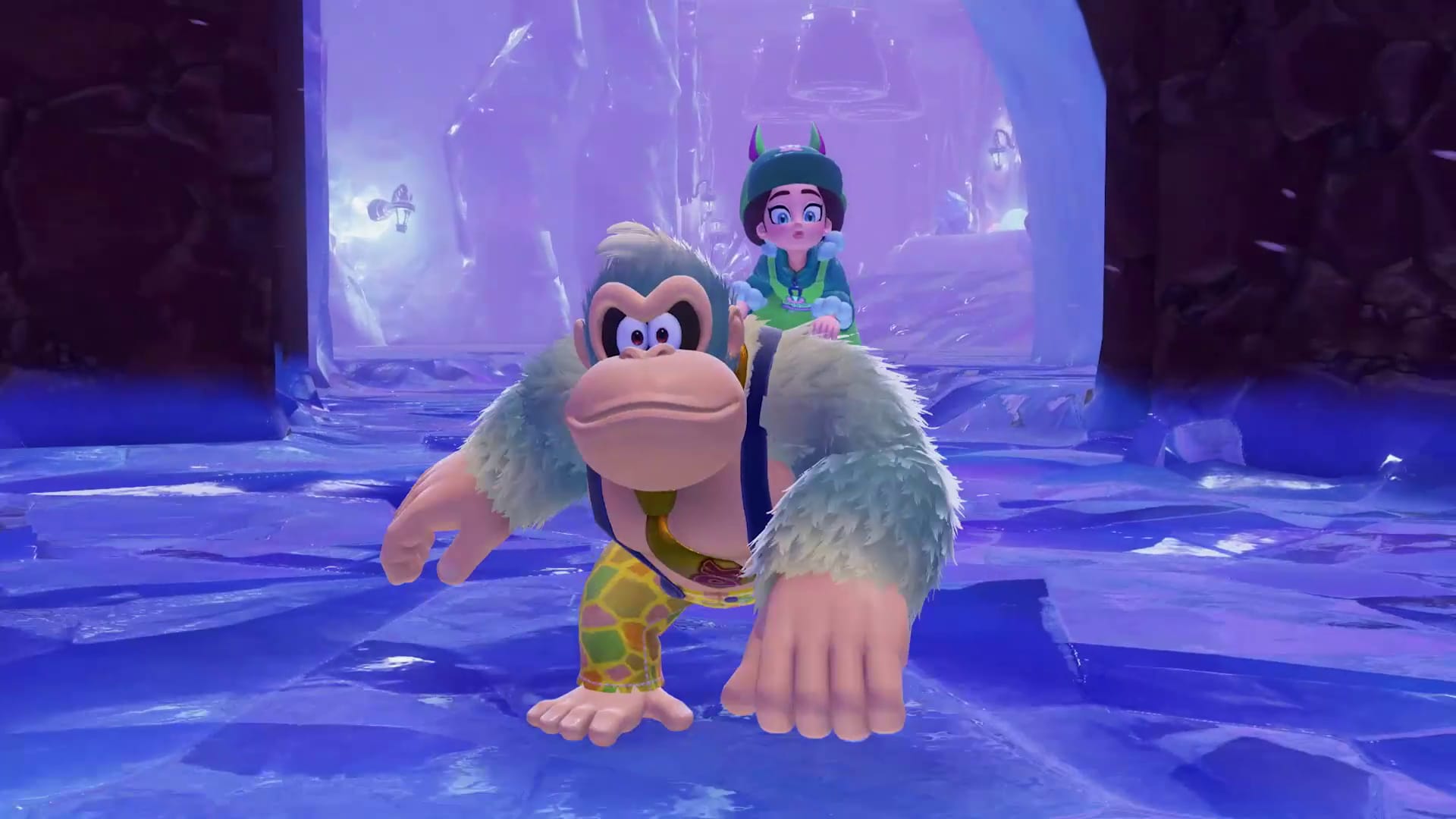 As you venture through the Layers of the world, you might run into some familiar faces like Diddy, Dixie, Cranky Kong, and Rambi!
