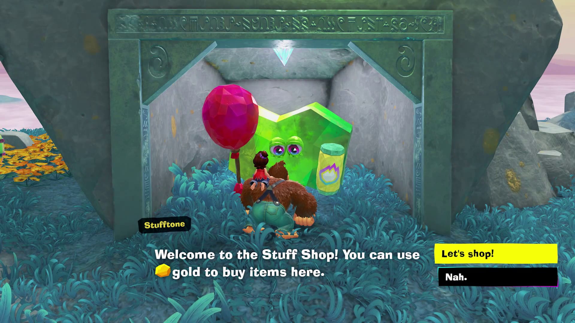 There’s more than Banandium Gems in that terrain you’re smashing—there’s also gold, which you can exchange for items in the Stuff Shop.