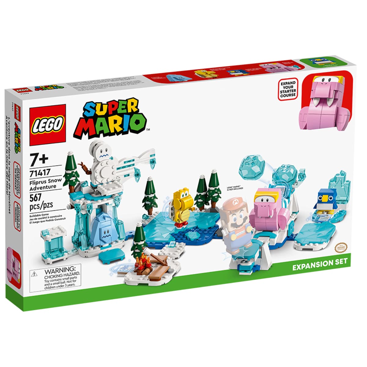 The model kit includes a sliding platform and lots of LEGO® elements to build new challenges and trigger different reactions in LEGO® Mario™ (figure not included).