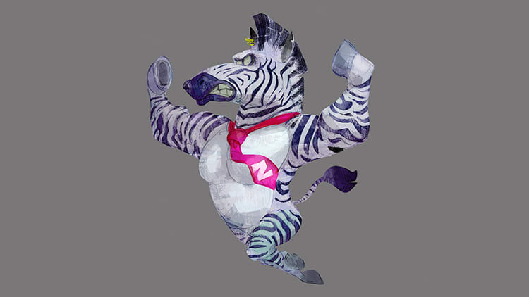Kubo: The series has a lot of recognizable background music, so of course, Donkey Kong Bananza has arrangements of those sprinkled throughout, too. However, it's also a completely new Donkey Kong game, so we momentarily set aside the fact that it's part of a series and took up the challenge of composing new tracks from scratch. At the same time, Donkey Kong’s new transformation mechanic was added, which meant we had to create tracks that would play while he's in his transformed state. That’s when one of the designers came up with this sketch of a zebra as one of his transformations.