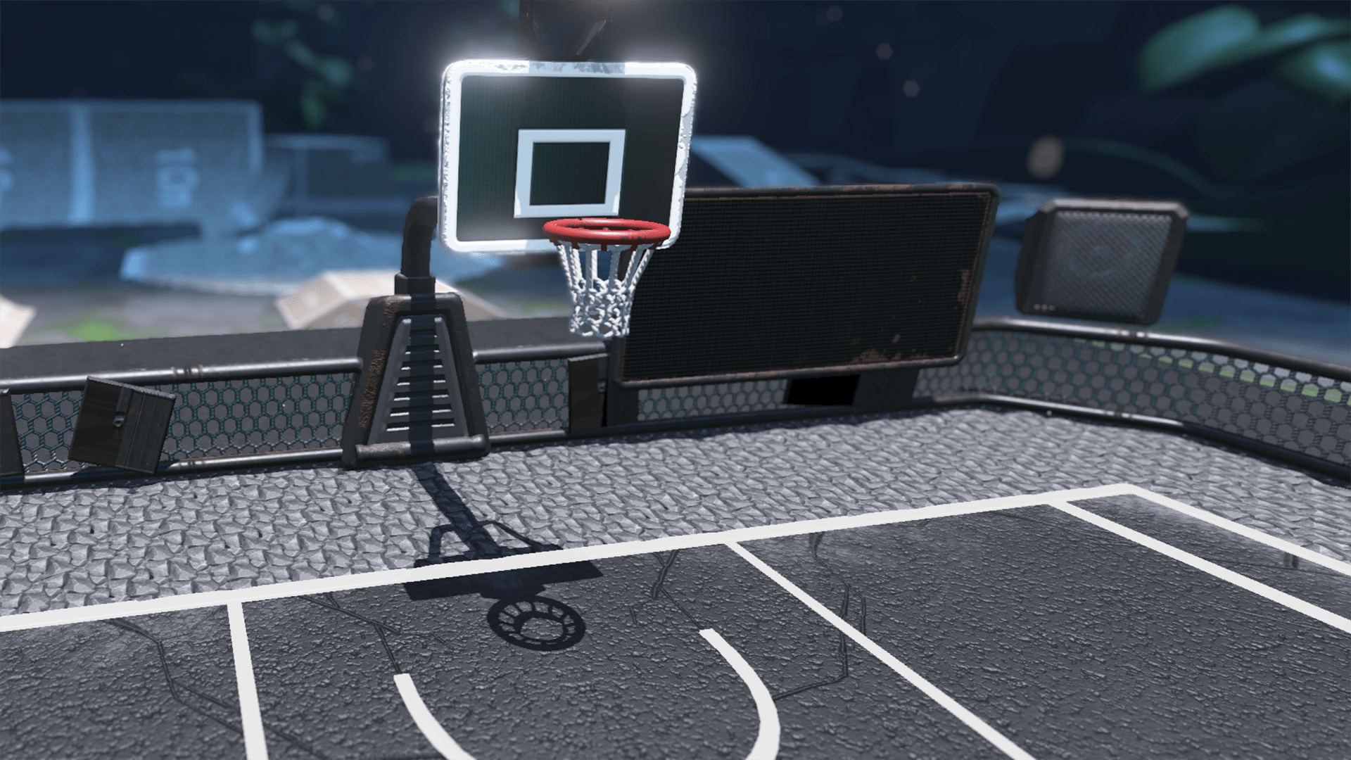 On the subject of jumping, one of the game’s distinctive features is the half-pipe under the goal, which players can use to launch themselves into the air and make stylish shots. Did that idea come up around this stage of development?