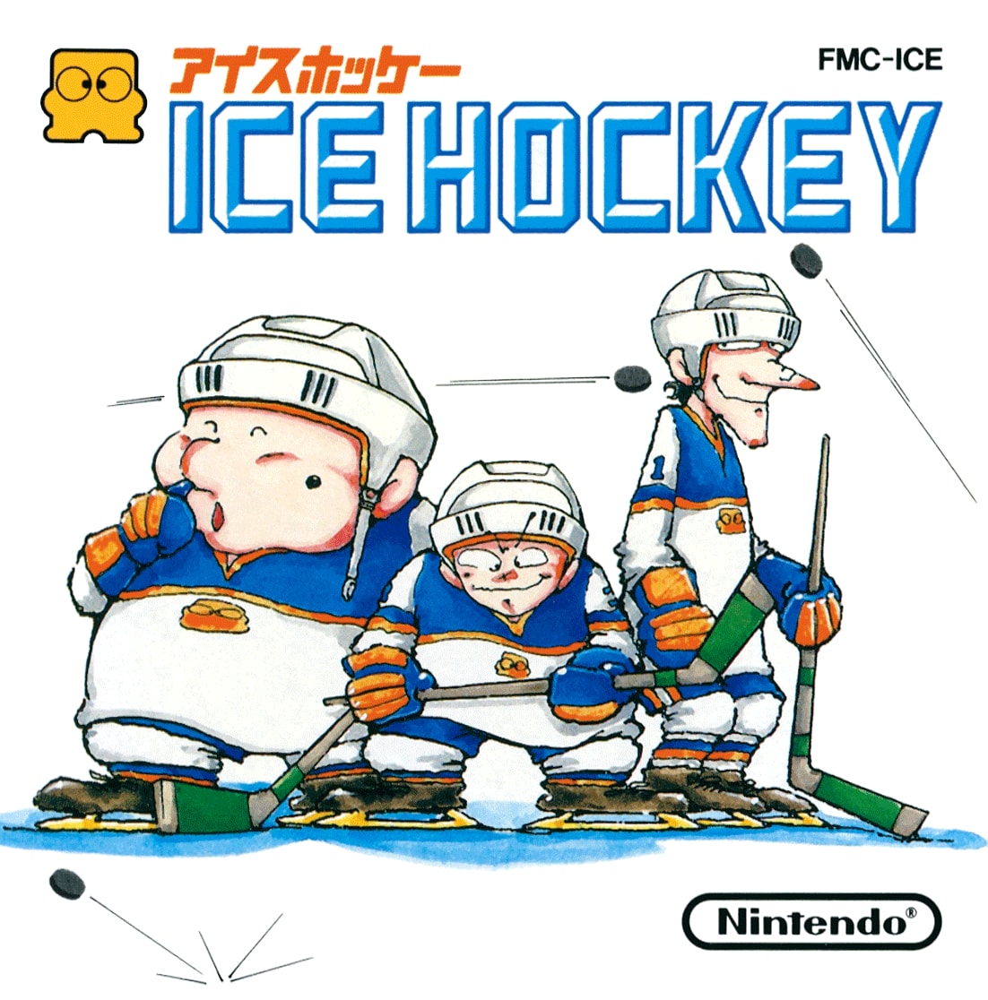 (9) A sports game released in 1988 for the Famicom Disk System in Japan and the Nintendo Entertainment™ System in North America. Players select the physiques and formation of four skaters and aim to score as many points as possible on the ice.